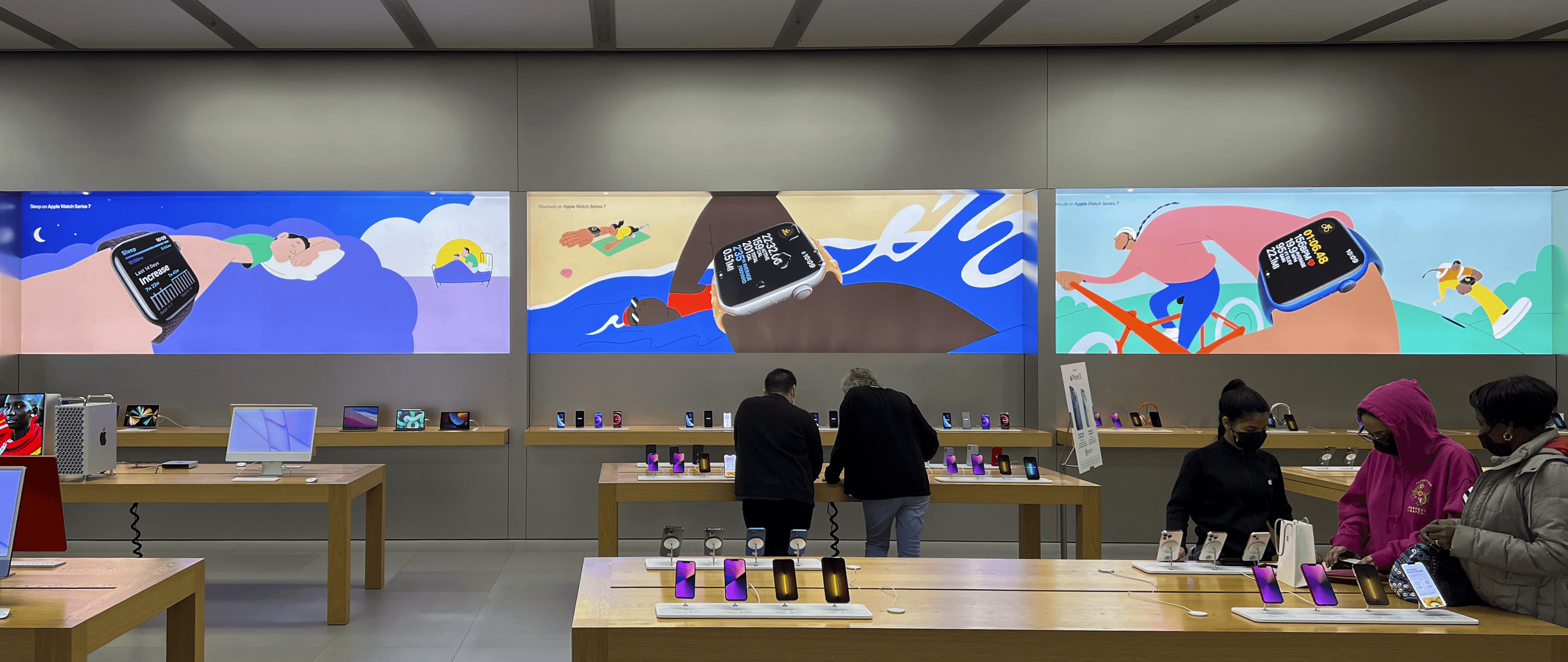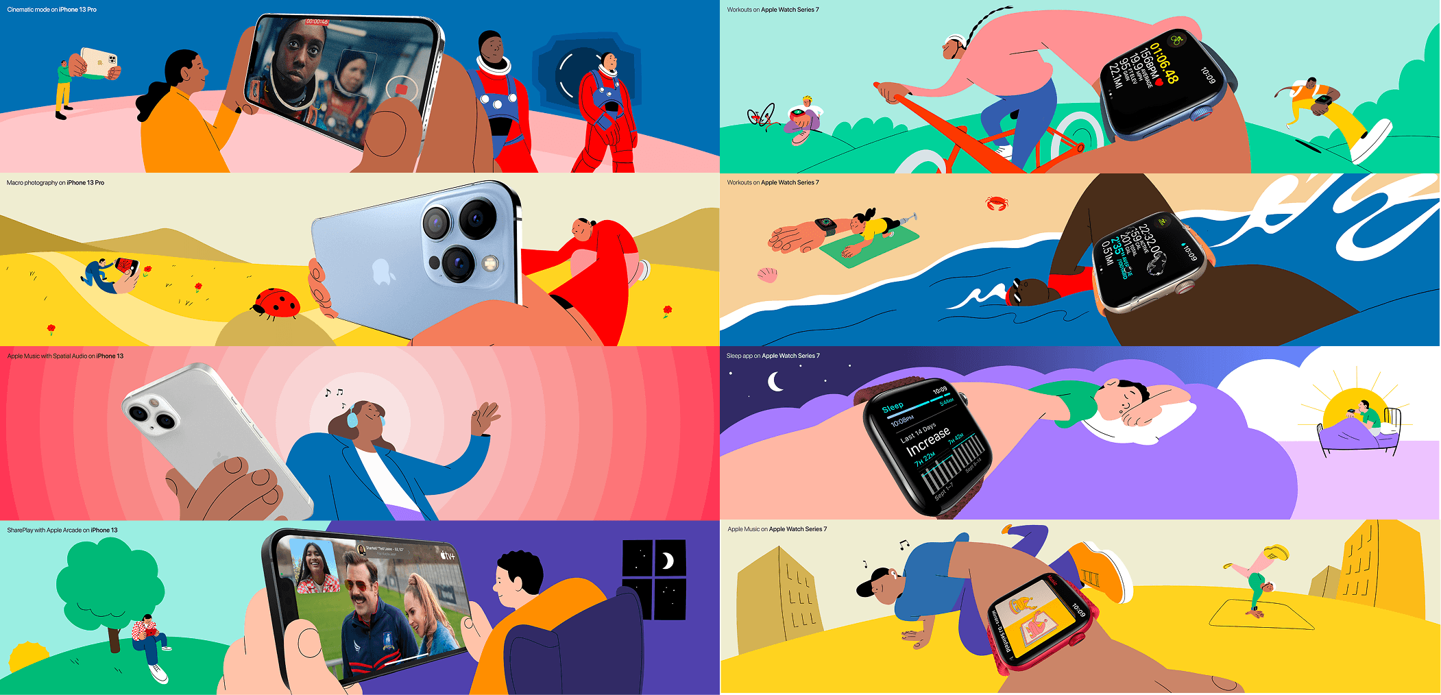 A large scale Apple Store retail campaign, featuring illustrations of Apple product pairings in order to showcase customer use cases and product features. My role in this campaign was directing the style and approach to the illustrated work, building compositional sketches and partnering with illustrator Alva Skog (Jelly) to create 8 final illustrations. Installed illustrations as light box panels in all 500+ Apple stores across the world.