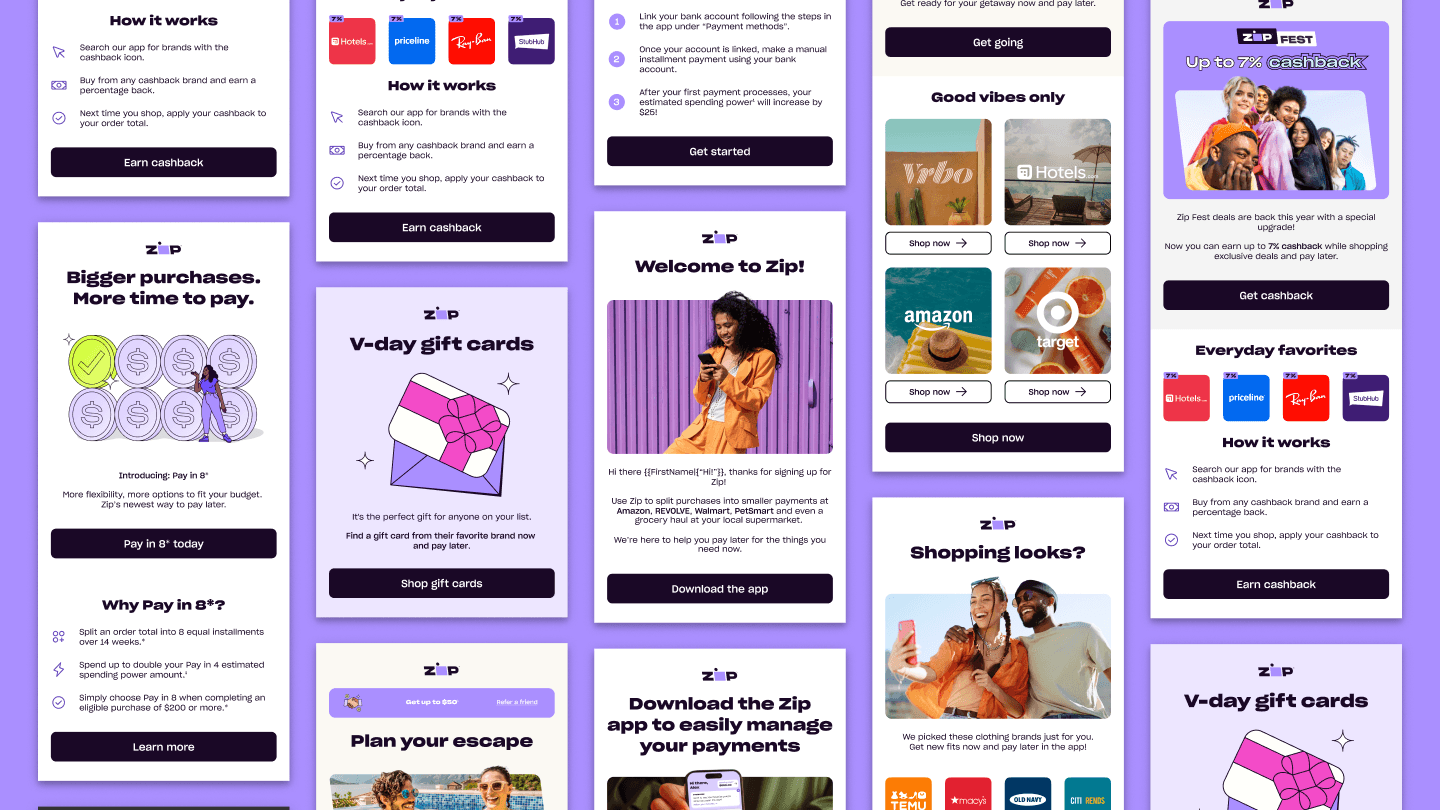 As a full-time brand designer, I was responsible for directing and protecting Zip's brand design and identity. Additionally, I led creation of high impact advertisements (OOH, paid media, video ad spots, campaigns, and partnerships,) brand illustration and video design, overhauled design systems for efficiency, and designed a robust & intuitive user journey flow for our customers.